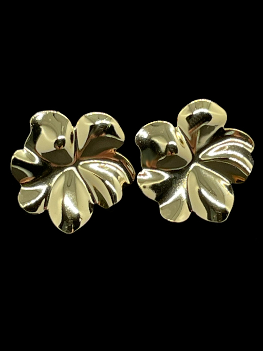 Brinco fixo em formato de Flor. Joia banhada a 6 milésimos de ouro legítimo 18 quilates.
