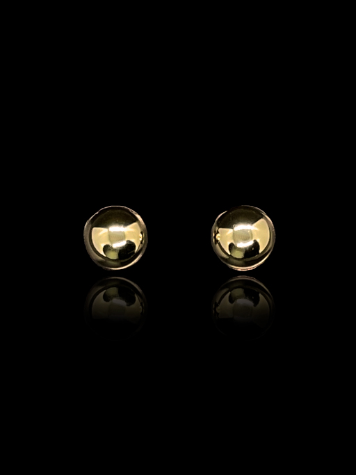 Brinco fixo em formato de Meia Bola, tamanho P. Joia banhada a 6 milésimos de ouro legítimo 18 quilates.